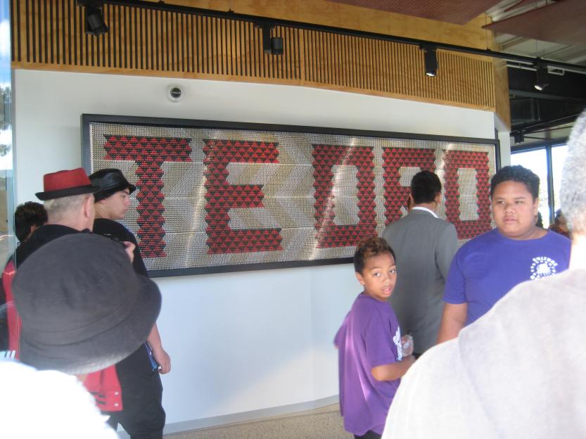 The name means a tonal reverberation or sound within a chamber and was gifted by Ngati Paoa, with the endorsement of Ngai Tai ki Tamaki and Ngati Whatua Orakei. It was inspired by the low drone created by winds moving over Mt Wellington’s volcanic crater and the idea of the community’s voices creating music and arts from the centre.