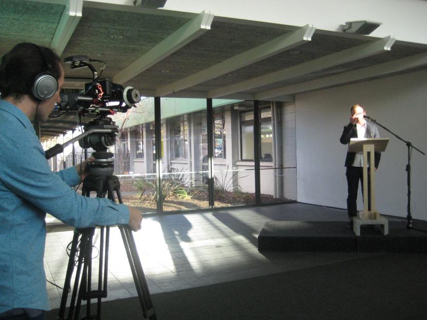 Yesterday afternoon, we attended the innovative show, Share/Cheat/Unite, curated by Bruce E. Phillips (pictured below on the podium), opened at Te Tuhi.