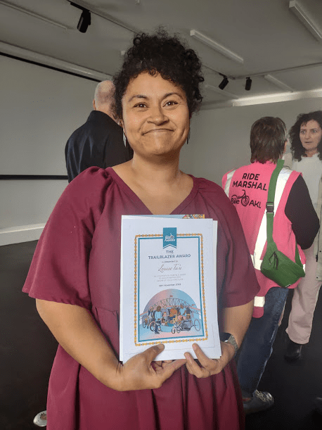 This past week saw our director, Louise Tu’u, deliver a deputation to the Mangere-Otahuhu Local Board (a public presentation that is under 10 minutes) with the awesome help and support from Angie Lin, Tiffany Robinson and Teva Chonon about her event, Brown Womxn Who Cycle AND also be awarded the inaugural Trailblazer Award at this year’s Bike Auckland AGM.