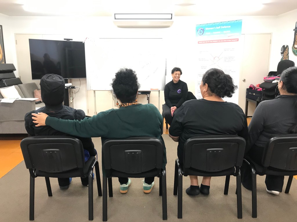 On the last day of June, Louise took part in a Maori and Pasifika Womens Self-Defence course, run by Bev Thomas for Kia Haumaru – Personal Safety Education at the Auckland Women’s Centre. Bev shared her expertise, knowledge of stories, as well as physical exercises to help protect wahine in confrontational and violent situations. These were exhilirating to practise and hopefully, will never be used. Here below are some of the participants, with Bev, facing the camera.