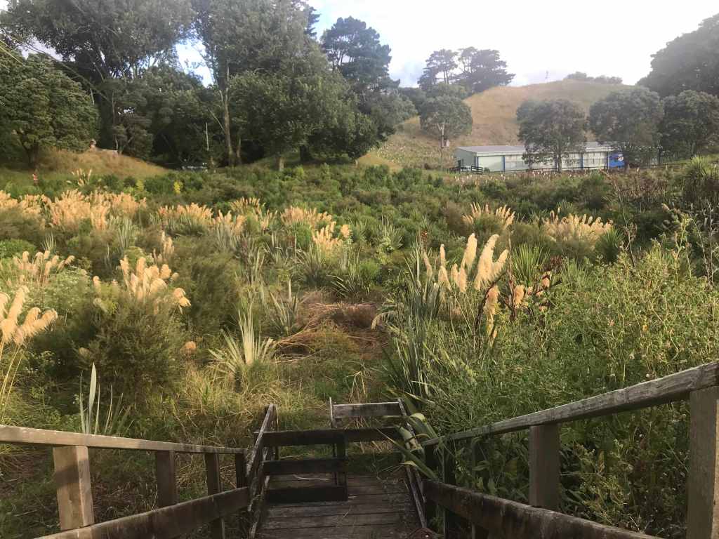 There’s a stile at the end of Doraval Place, which Louise contemplated hauling her bike over but she decided against it. The area were once rugby league playing fields for the local Ōtāhuhu Leopards club but since 2019, has had regenerative planting of toitoi and other native plants.