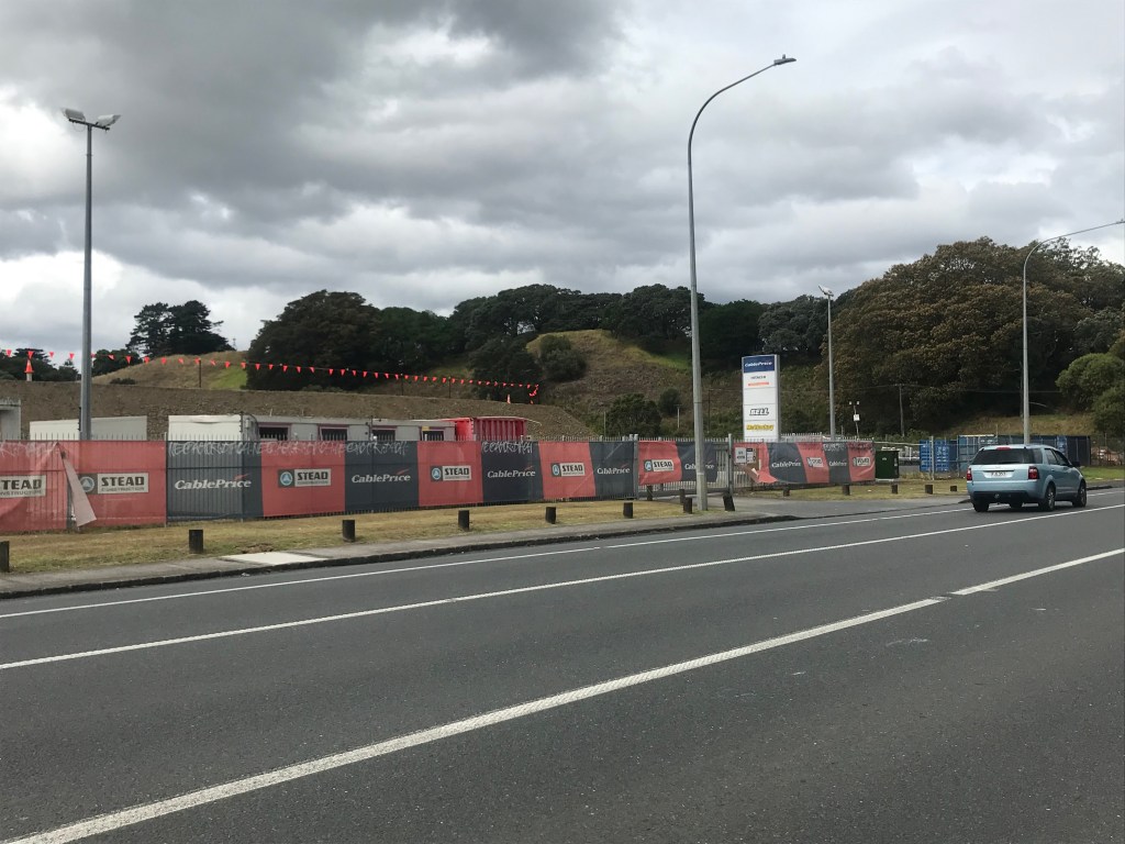 Louise then rode onto Great South Road, seeing familiar sights like this data bank and empty car yard, next to the Ōtāhuhu maunga.