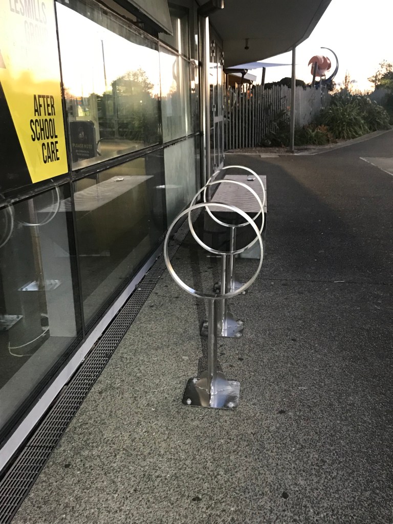 Congratulations to the Māngere-Ōtāhuhu local board for putting in 5 new bike stands outside Tōia Recreation Centre! The 2nd photo is tinny, because of the excitement that these stands exist!